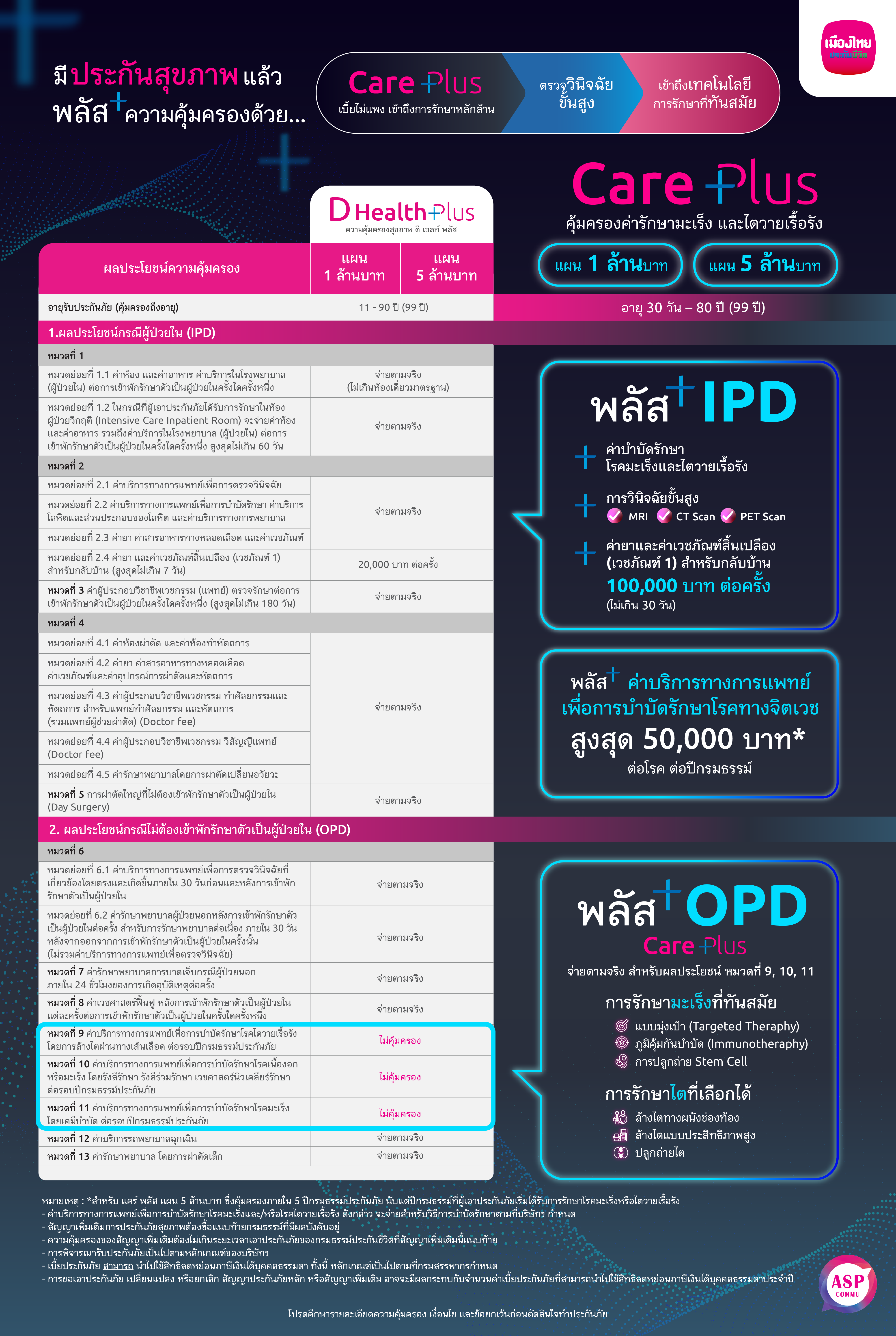 - สมัครได้ตั้งแต่อายุ 11-90 ปี ดูแลยาวถึงอายุ 99 ปี