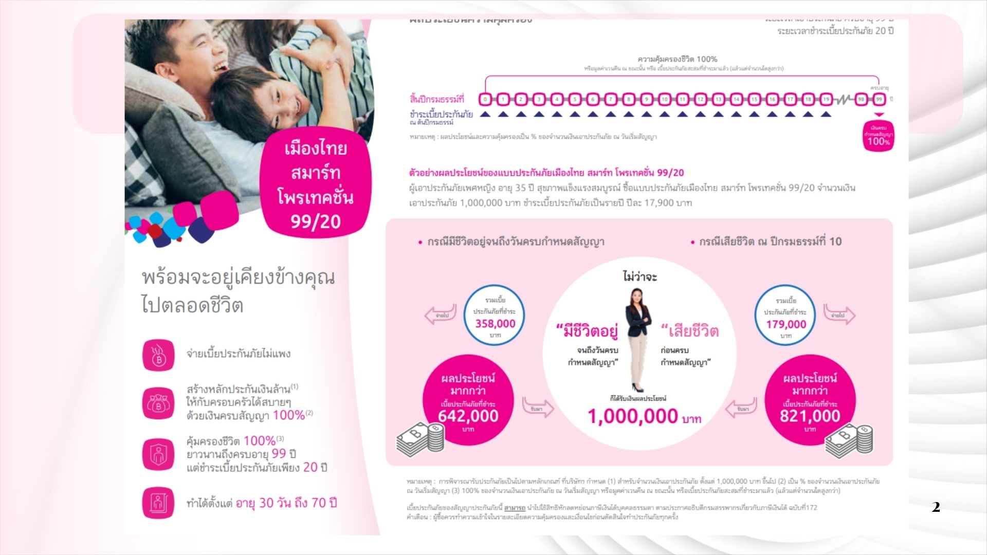 • รับเงินตามทุนประกันเมื่อเสียชีวิต หรือ อายุครบ 99 ปี