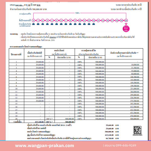 | ทุนประกัน | 150,000 | 200,000 | 500,000 | 150,000 | 200,000 | 500,000 |